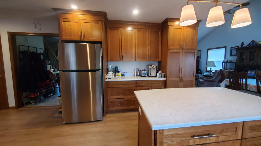 Kitchen cabinet installation with large pantry